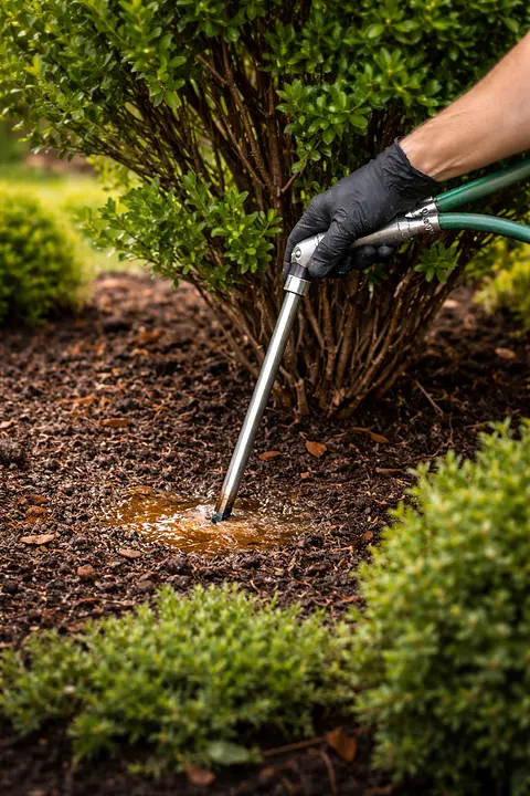 Deep root feeding using soil injection to deliver nutrients and microbes directly to roots boosting tree and shrub health from below.